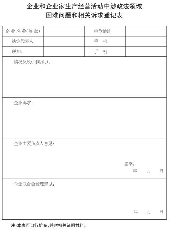 各会员企业: 为进一步优化法制营商环境,保护企业及企业家合法权益,市企业联合会会同市政法委构建了法制营商环境联席会议机制,定期与市法院、检察院、公安局、司法局等成员单位研究解决企业和企业家生产经营活动中遇到的涉政法领域困难问题和相关诉求,有针对性地优化政法服务,及时有效回应企业和企业家相关诉求。现向各会员企业征集企业和企业家生产经营活动中遇到的涉政法领域困难问题和相关诉求。 一、征集范围 ...