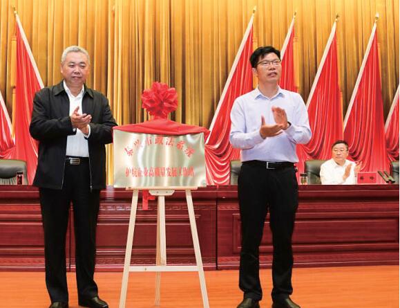 市委常委、市委政法委书记王建武、市企业联合会会长孙云共同为泰兴市政法系统护航企业高质量发展工作站揭牌。